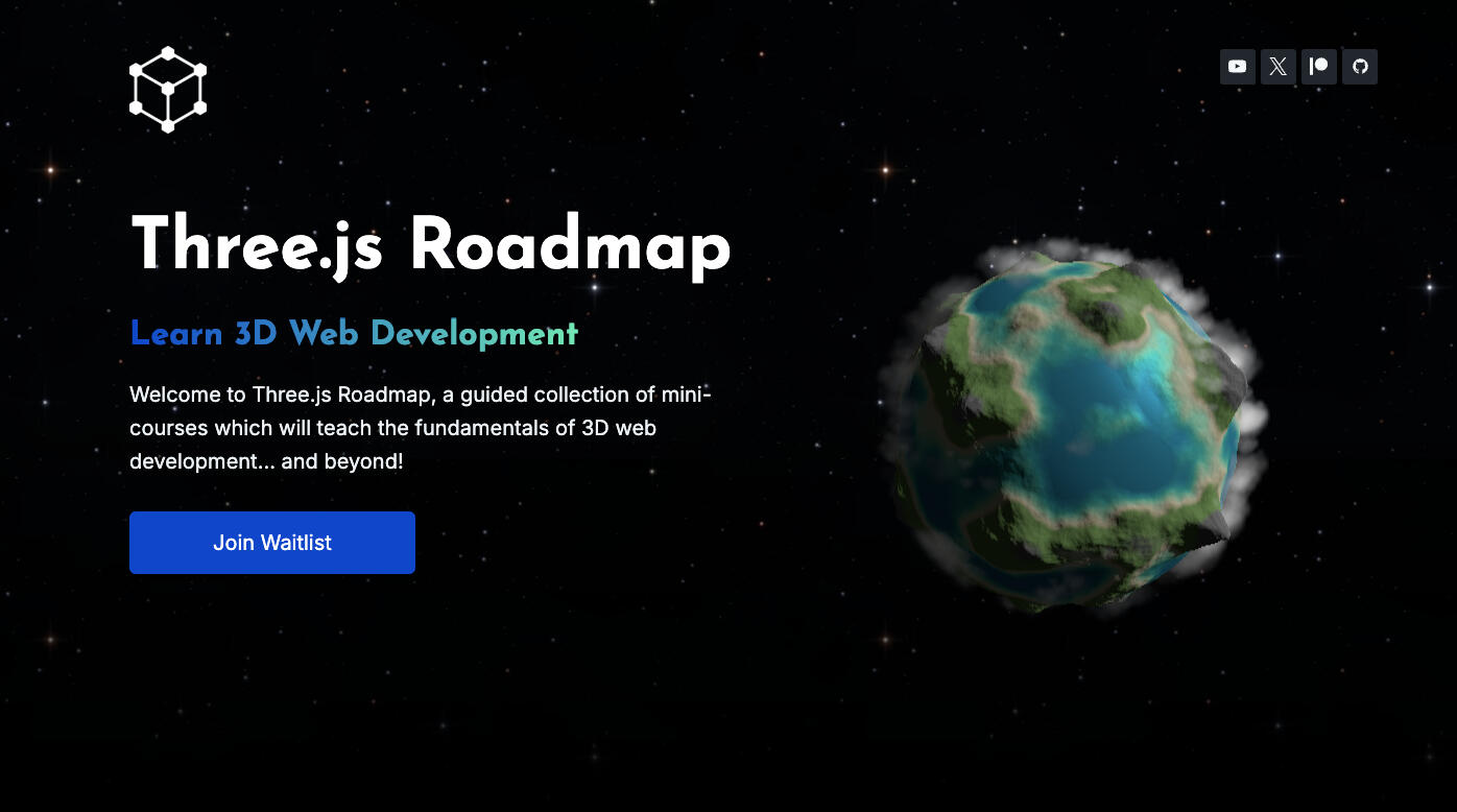 Three.js Roadmap is guided collection of mini-courses which will teach you the fundamentals of 3D web development… and beyond!